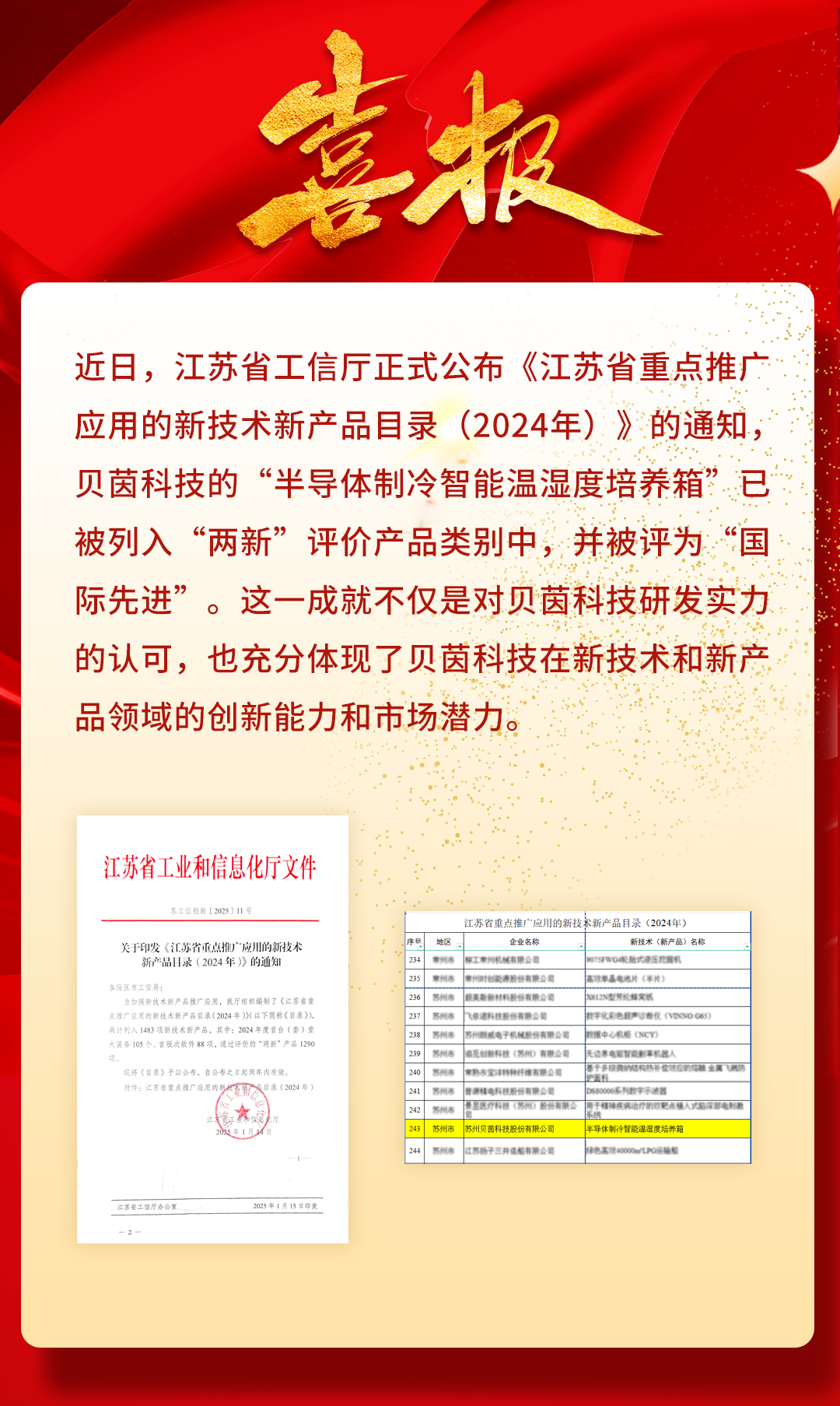 【公司新聞】祝賀貝茵科技“半導(dǎo)體製冷智能溫濕度培養箱”列入“兩新”“國際先進”