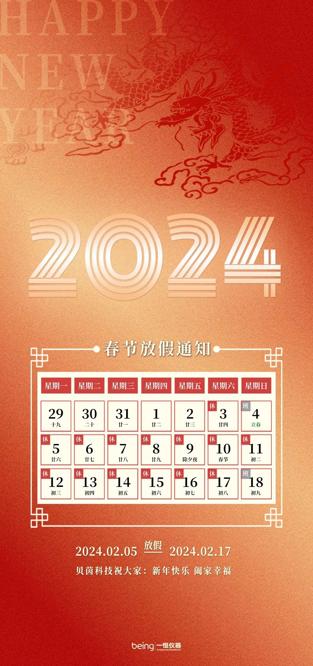 貝茵科技2024春(chūn)節放(fàng)假通(tōng)知