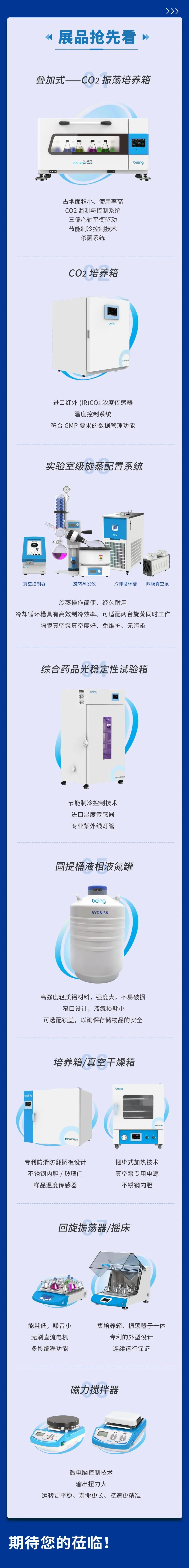 本次展會,我們(men)將攜疊加式二氧化碳(tàn)振蕩培養箱、實驗室(shì)級旋轉蒸發儀和(hé)配套(tào)係統、綜合藥品光穩定性(xìng)試驗箱、圓提桶液(yè)相液氮罐、幹燥箱、回旋振(zhèn)蕩器、搖床、磁力(lì)攪拌器等前沿產品與解決方(fāng)案,亮相170-171展台。