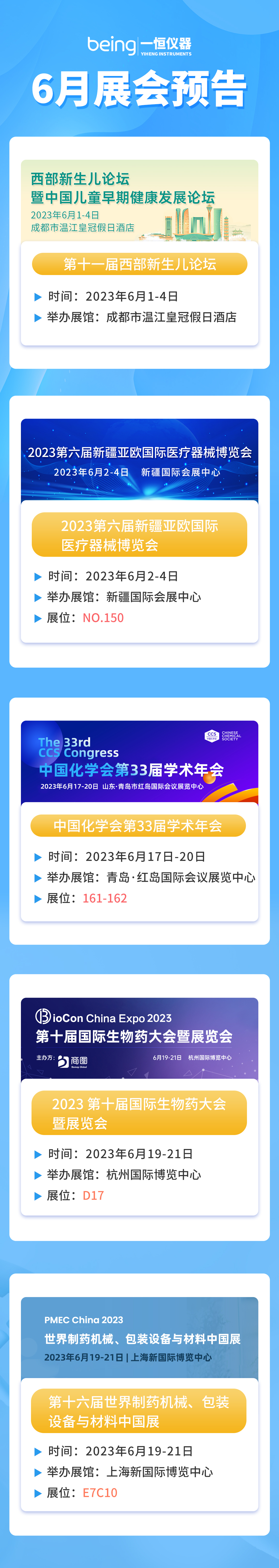 新聞資訊 您當前的(de)位置:首頁 > 新聞資訊 > 初夏的精彩不容錯過 初夏的精彩不容錯過(guò) 貝茵科技6月份參(cān)展/會信息指南 2023-05-30 | 文章來源: | 點擊率: 上(shàng)一篇: 精彩不止(zhǐ)步 一恒(héng)儀器參展第20屆CACLP 下一篇: GET 低溫培(péi)養箱的應用 相關新(xīn)聞: 生物安全,從一方潔淨開始 綜合(hé)藥品光穩定性(xìng)試驗(yàn)箱如何成為(wéi)藥品上市(shì)前的一道“安全門” 拒絕“溫度失控”,製冷和加熱循環槽的“跨界”控溫藝術 【公司新聞】一恒儀器2025年度半導體製冷儀器產品培訓交流會圓滿落(luò)幕 溫度上不去,時間耗不起,是(shì)時候體驗真正的幹燥(zào)了! 幹燥(zào)效率與(yǔ)物料(liào)活(huó)性(xìng)不可兼得? 真空幹燥箱說:我(wǒ)可以! 分享到微信新浪微博騰訊微博人人網QQ好友0 返回(huí)新聞列表 >>
