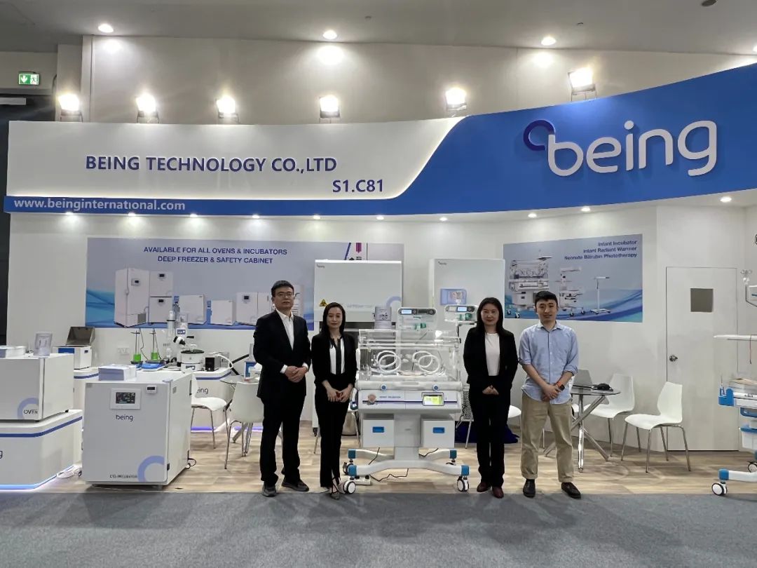 本屆Arab Health,貝茵科技攜眾多重磅產品亮相此次展會,現場展示有嬰兒培養箱、嬰兒輻射保暖台(tái)、注射泵、二氧(yǎng)化碳培養箱、超低溫(wēn)冰箱、生物安全櫃、恒溫槽、振(zhèn)蕩器、隔膜泵、磁力攪拌器等儀器設備。展會(huì)現場老客戶如約而至,新客戶紛紛駐足,由衷感歎“中國質造”到“中國智造(zào)”的(de)轉變。