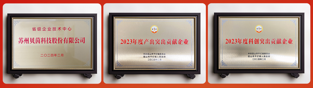 蘇州貝茵科技股份有(yǒu)限公司(sī)作為企業代表出席以上會議,獲得“省級企業技術中心”榮譽授牌,並喜獲“千(qiān)燈鎮2023年度產出突出貢獻企業”和“千燈(dēng)鎮2023年度科創突出貢獻企業”兩項(xiàng)殊榮。